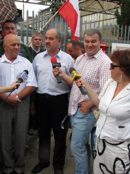 Konferencja prasowa Prawa i Sprawiedliwości przed Fabryką Maszyn Tarnów