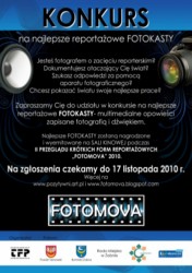 Fotokast to bardzo nowoczesna forma prezentacji zdjęć. Pozwala ona opowiadać historie z komentarzem dźwiękowym, a także poprzez multimedialność i zamieszczanie na stronach internetowych, zapewnia praktycznie nieograniczoną dostępność. O tym, że fotokasty mogą być ciekawe dowiedzieli się z pewnością ci, którzy w zeszłym roku wzięli udział w I Przeglądzie Krótkich Form Reportażowych „FOTOMOVA”.